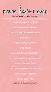 This game might best be played in small groups where kids know each other really well. Based off the game celebrity this is the perfect party game if you want to be fun and interactive with your friends. One person says never have i ever and something they ve never done.