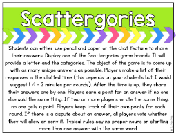 For example you can use games at the end of an online session to practice a skill. Here are some scavenger hunt ideas. A great way to play this in a virtual classroom is to give students a particular topic for example animals and then ask students one by one to name something from that topic.